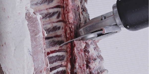 The IR-SCRIBE system has a small footprint and operates on artificial intelligence. IR-SCRIBE works by first stabilising the carcass. An artificial intelligence system then analyses an image of the carcass and instructs a robotic cutting saw to make the appropriate cuts.